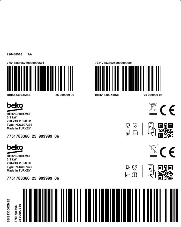 BBIS13300XMSE: Built-In Oven (60 cm, 72 L)